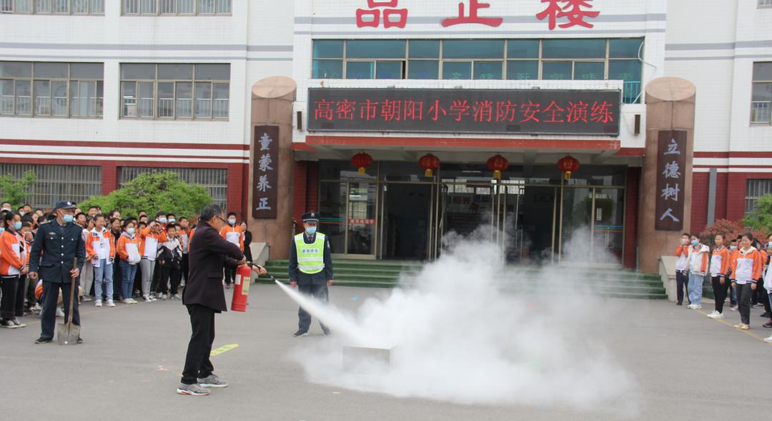 ▲近日,高密市朝阳小学开展了消防和防震应急疏散演练。(高密市朝阳小学供稿)