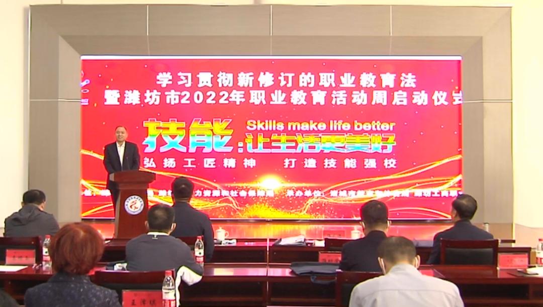 ▲5月12日,学习贯彻新修订的职业教育法暨潍坊市2022年职业教育活动周启动仪式在潍坊工商职业学院举行。(高教职教科供稿)