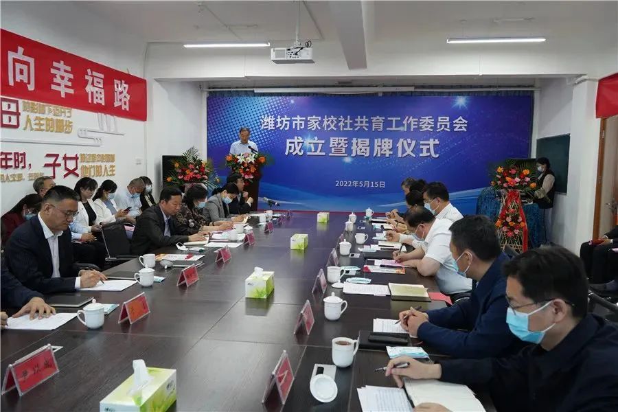 ▲5月15日,潍坊市家校社共育工作委员会启动仪式在奎文区家长学校举行。(市教育惠民服务中心供稿)