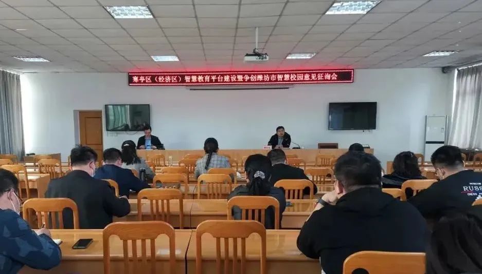 ▲近日,寒亭区(经济区)举行智慧教育平台建设暨争创潍坊市智慧校园意见征询会。(寒亭区教体局供稿)