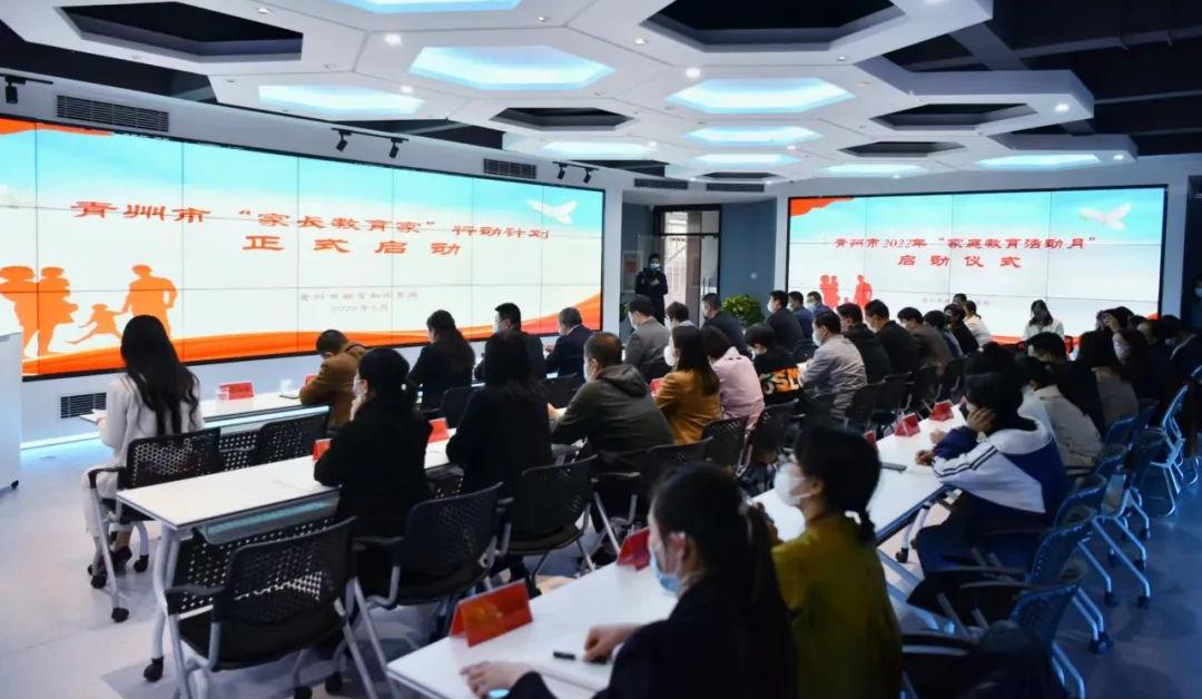 ▲5月13日,青州市2022年“传承优良家风家训 建设幸福和谐家庭”家庭教育活动月启动仪式在市教体局大数据中心举行。(青州市教体局供稿)