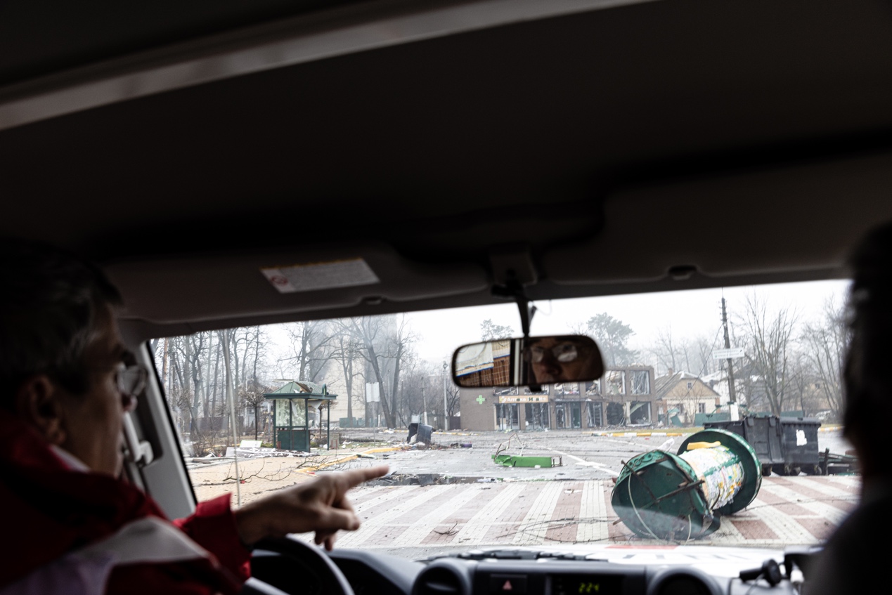 4月1日,乌克兰首都基辅附近城市伊尔平,ICRC的工作人员执行任务。