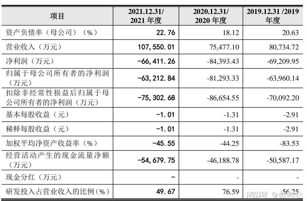 科创板披露的云从科技申请书显示,2019年至2021年云从科技营收分别为8.07亿元、7.55亿元和10.76亿元,其中2021年营收增长为42.6%。同期归母净利润分别为-6.40亿元、-8.13亿元和-6.32亿元。