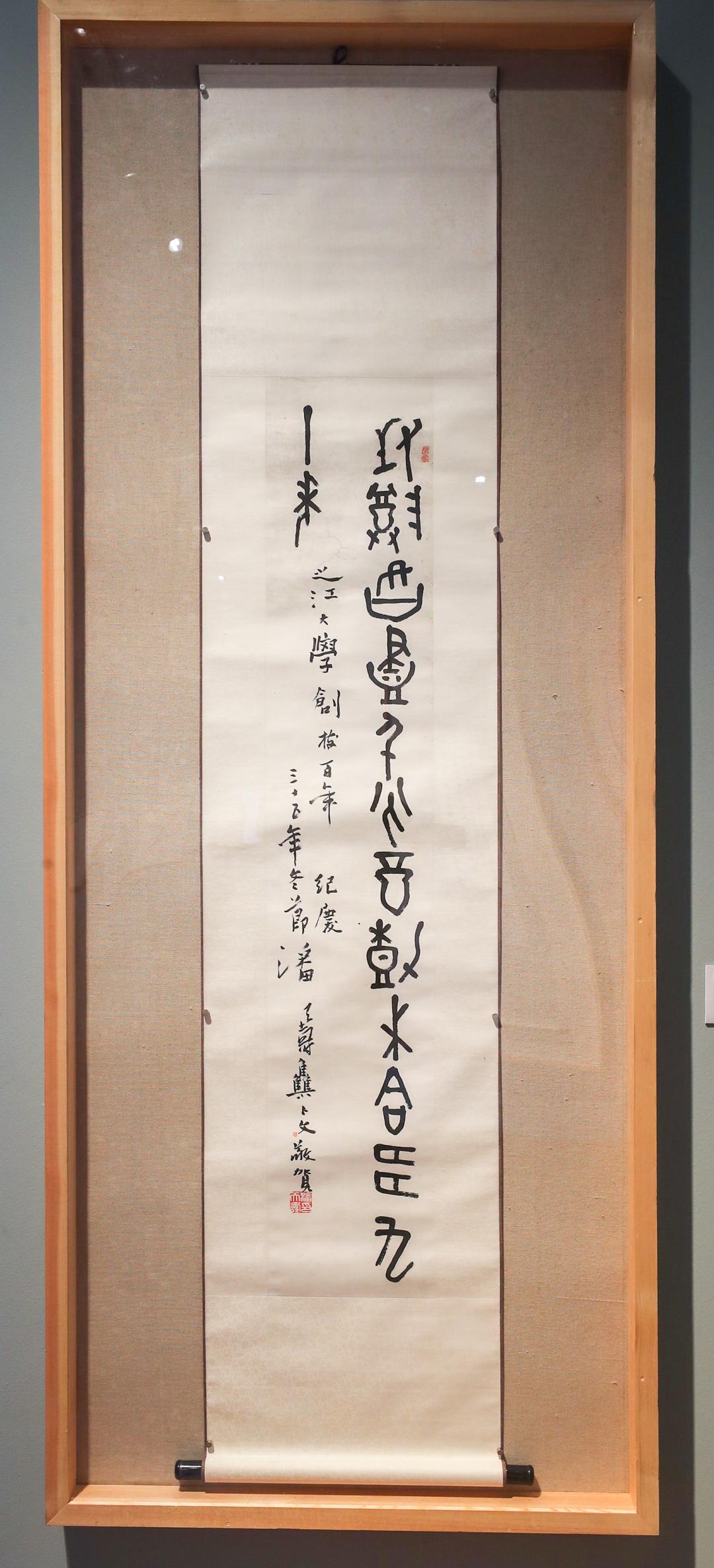 “一代儒宗”马一浮一直悬挂在书斋的《息阴憩石联》、潘天寿给之江大学创校百年所作的庆贺词、马叙伦写在书上的题记等,之前一直珍藏在浙江大学,这次展览也是第一次对公众亮相。