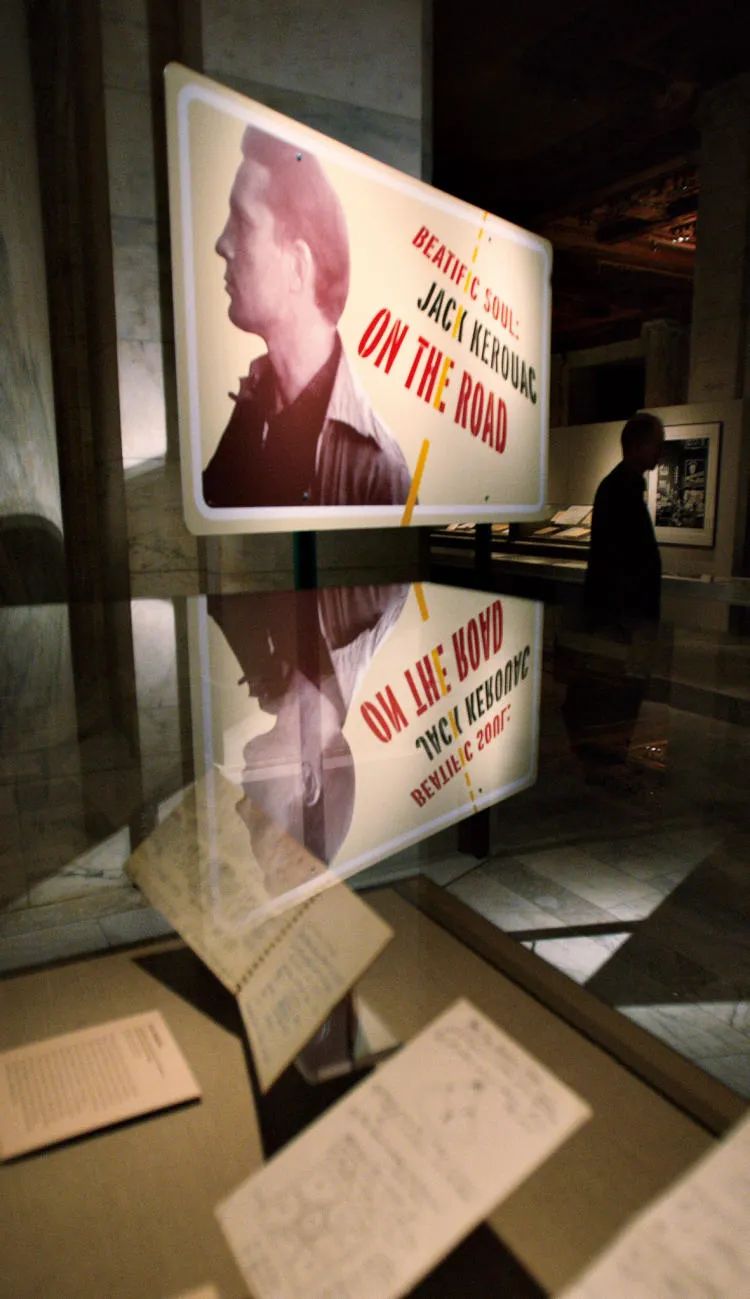 2007年11月7日,凯鲁亚克作品的手稿在纽约公共图书馆展出。(图/ 视觉中国)在出版它之前,凯鲁亚克又拿出了7年的时间用于旅行。