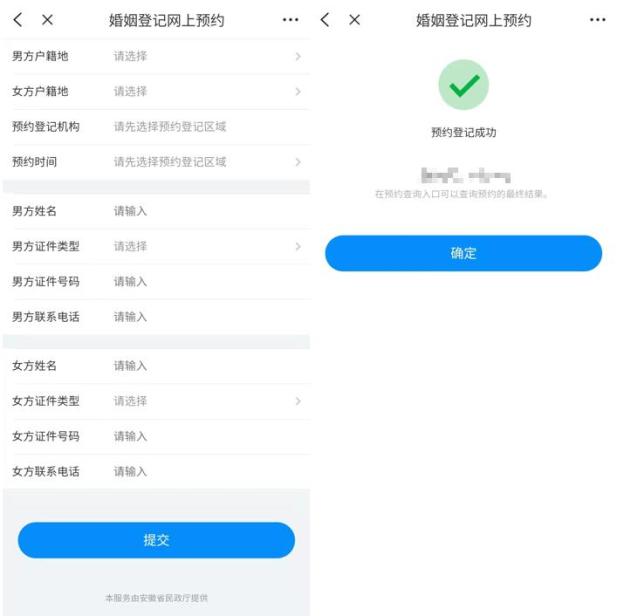 ☞温馨提示:1、当事人网上预约时,男女双方至少需要有一方的户籍在安徽才可预约。