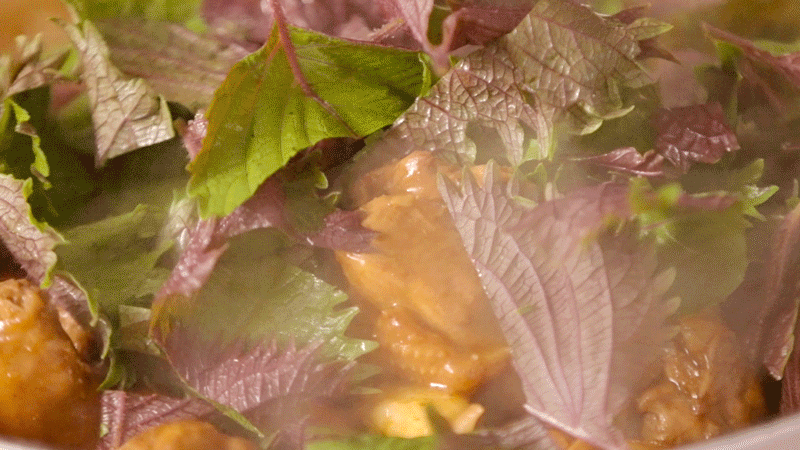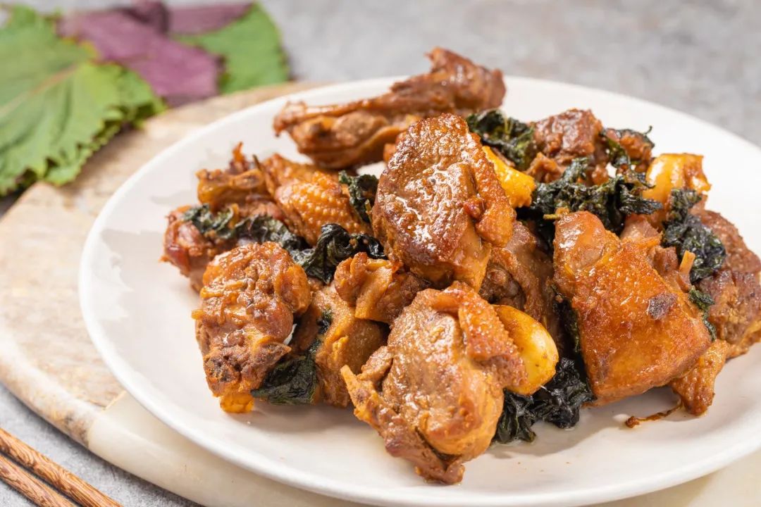烦闷难熬的炎夏,还真适合吃紫苏。紫苏解表散寒、行气和胃,有显著的杀菌作用,煮水也可用来祛湿气。香气独特,用来做菜还能提味增香,不如用它来焖鸭子!紫苏焖鸭是道粤菜,把鸭肉炒成焦糖色,焖到酥烂,裹着酱汁,细闻之下还有紫苏的清香气。扎扎实实的一道菜,配上健胃解毒的紫苏,专治夏季没胃口。
