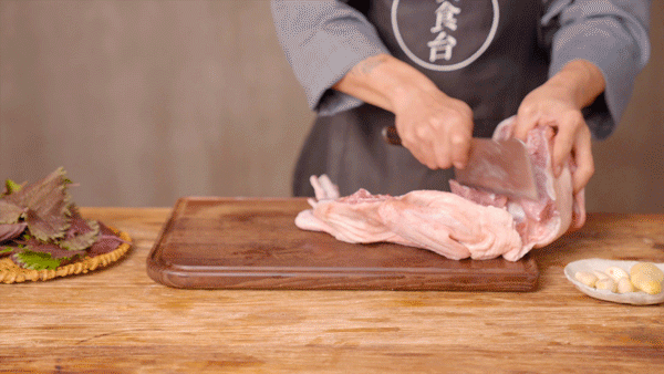 一只番鸭的重量在8-10斤左右,3口之家只用半只就能吃得美美的。把鸭子斩成5厘米见方的小块,大小方便入口,又能保证咀嚼时的肉感。