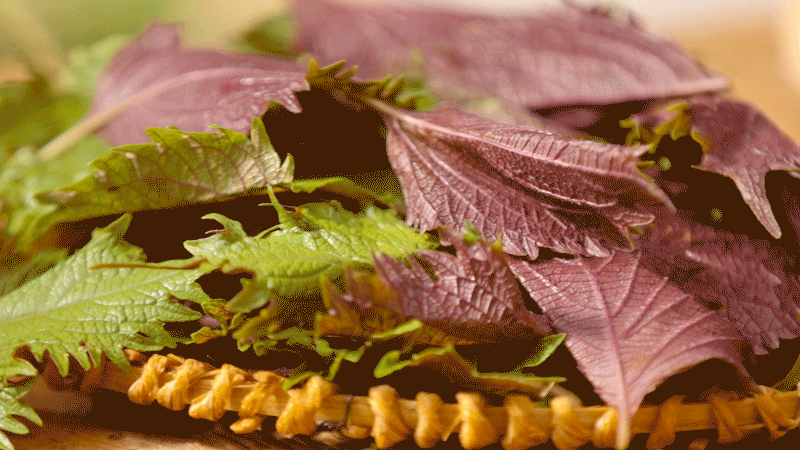 紫叶紫苏的香气更浓,加热后也不会变色,炒菜焖菜一把好手。