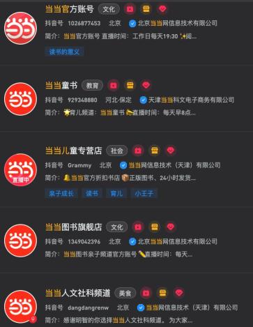 当当部分抖音账号
