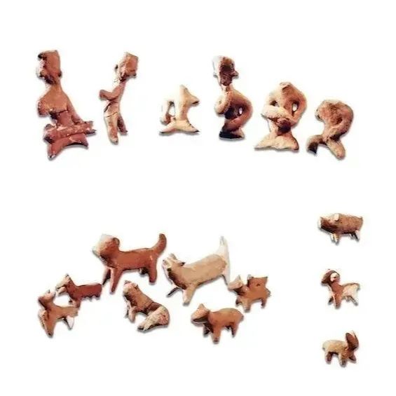左:天门石家河遗址出土陶塑品右:“郧县人”遗址出土Ⅱ号头骨化石