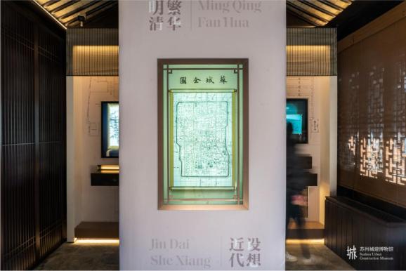 博物馆以苏州之窗为核心元素构建了穿越古今的时光通道,贯穿起城纪千载、现代苏城、城市生长、城市会客、百馆之城等主要展厅。