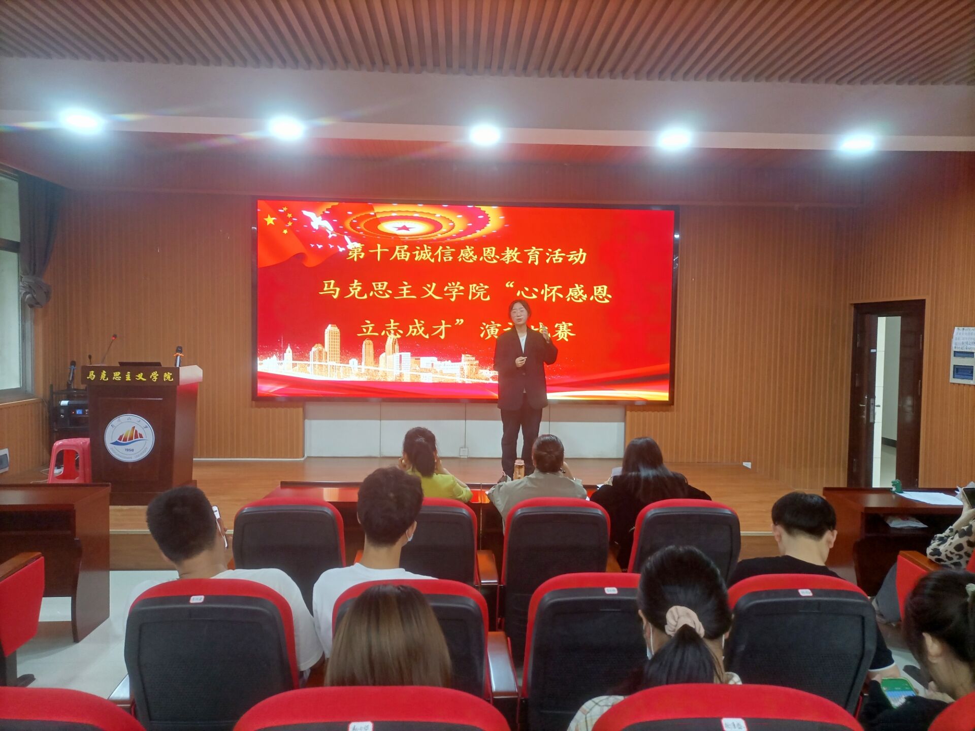 感恩是一种纯粹美好的力量,推动着青年砥砺成才。为落实立德树人根本任务,增强学生社会责任感,使学生常怀感恩心,井冈山大学马克思主义学院于5月19日在1栋103举办了“心怀感恩,立志成才”演讲比赛。学院党委副书记吴丽花、学生科科长曾楚乔和团委书记饶华萍应邀担任评委。