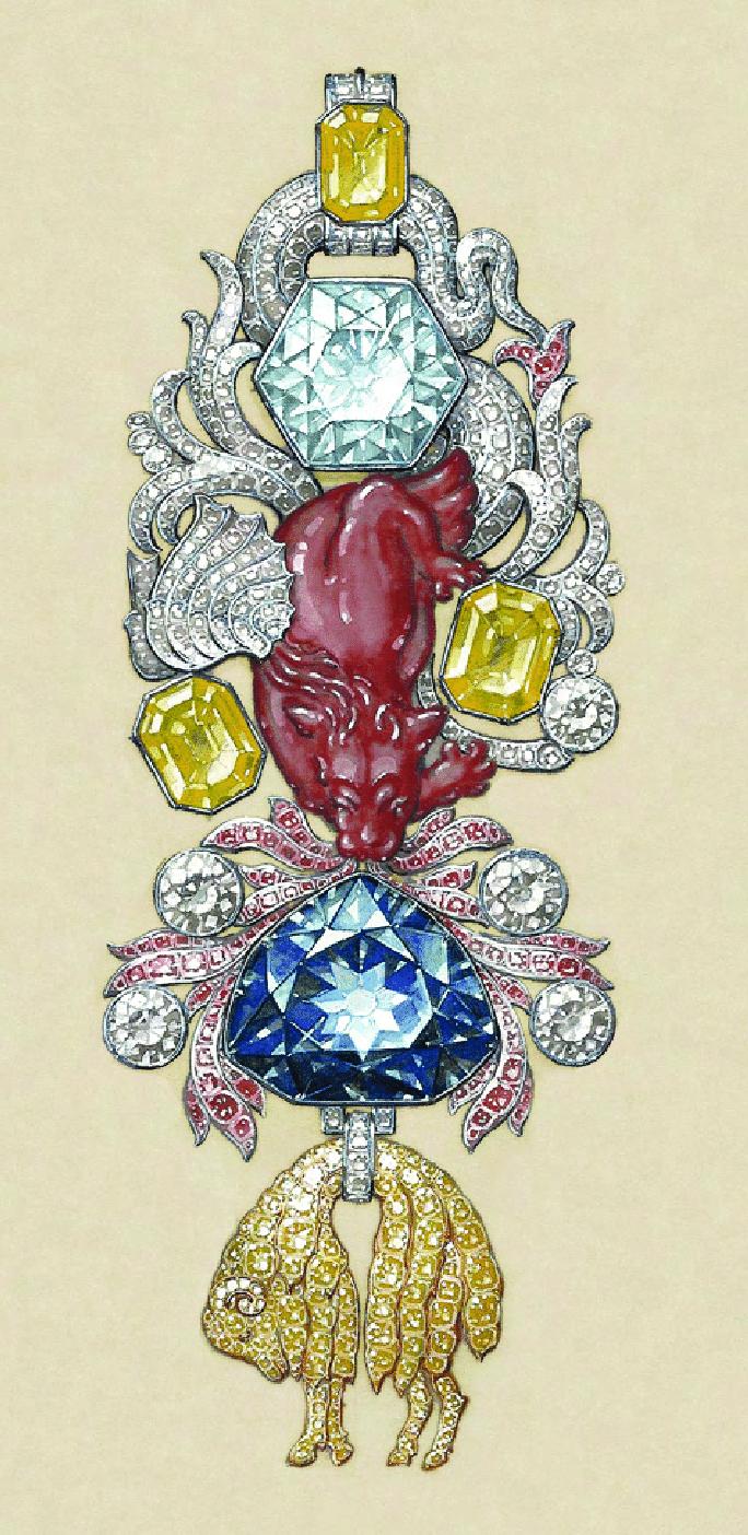 钻石中心被切割成了太阳的模样,代表着路易十四。/金羊毛勋章包括一颗107克拉的红色尖晶石,形状像龙呼吸“贪婪的火焰”,周围以83颗红色钻石和112颗黄色彩钻装饰。/右为根据历史记载所制复制品然而,当王朝倾覆,这颗钻石也流落了民间,此后,它反复出现又消失,被盗贼一次次损害,而在几十年后重回公众视野之时,它早已面目全非。与此同时,饱受摧残的希望钻石,声名也突然变得古怪神秘了起来。