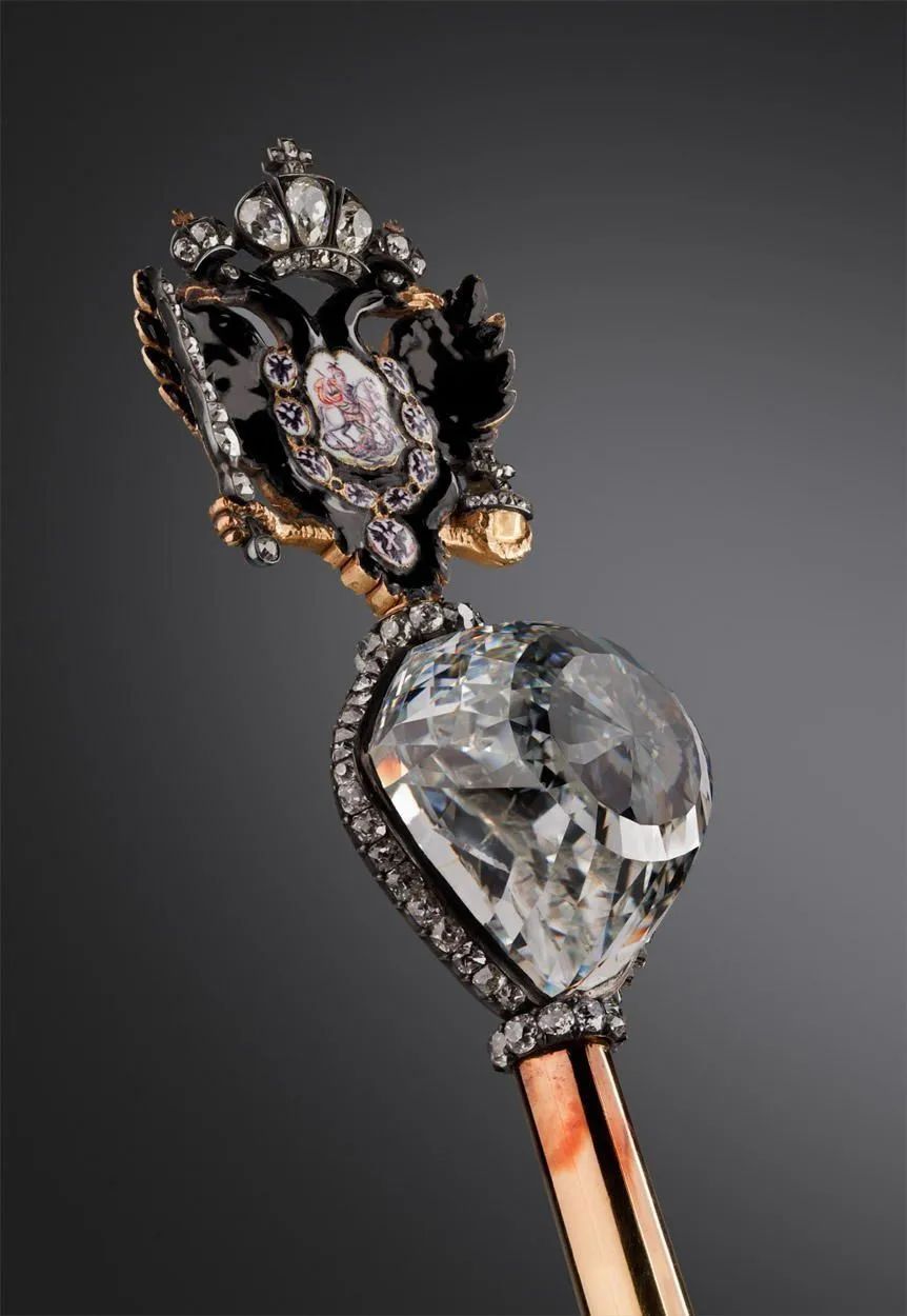 据说伯爵为此支付了超过140万荷兰盾,也有说法认为这笔钱实际上是女皇支付的。/它被放置在法杖上,周围环绕着一圈较小的钻石,以金色双头鹰为主题。眼见凯瑟琳笑逐颜开,奥尔洛夫还以为他重获了芳心,可还没过几天,俄罗斯女皇这位曾最亲密的知己就失去了在王宫的立足之地。