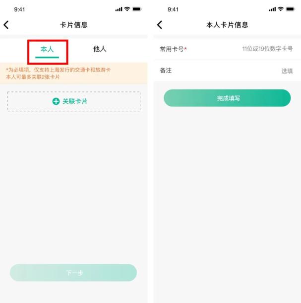 注意事项1.您可输入关联您本人或他人(老人、视障人士、学生、幼龄儿童等特殊群体)常用的上海公共交通卡或上海都市旅游卡,您为本人可最多关联2张卡片。