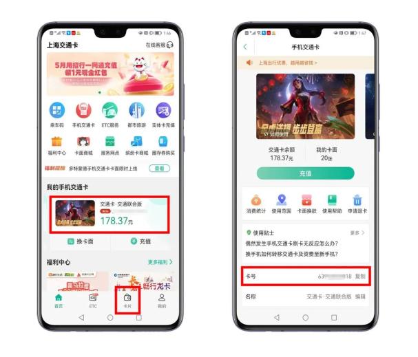 如何查找NFC虚拟交通卡号?NFC虚拟交通卡的卡号可在“上海交通卡”App首页卡片或下方菜单栏【卡片】中查询,并可复制卡号;或在手机自带钱包App上查询手机交通卡的“卡片信息”。