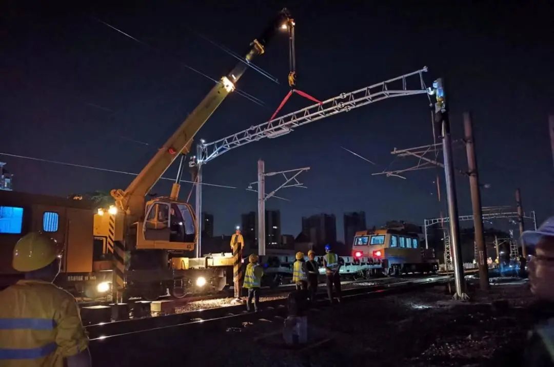 为了保证工程施工安全、质量和工期,郑州通号电气化局组织精兵强将,组建专业管理团队,与建设单位及各配合单位深入沟通,制定了科学合理的工程实施方案和工期计划。项目管理团队将压力变为动力,在常平建设过程中,项目部施行“白+黑”“5+2”工作模式,昼夜兼程、交叉施工,多名管理人员现场指导,400名劳务人员辛勤作业,奋战施工一线抢点抢工期。深夜的天窗点,各部门坚守在各自岗位,坚守在施工一线,用勤劳和汗水谱写出一曲感人的劳动之歌。