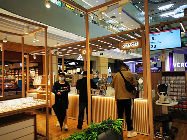 百联金山购物中心内眼镜店在接待顾客