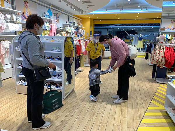 在一家童装店,汤女士正为两岁的孩子精心挑选夏季衣服和鞋子。“我们是3月27日从外地过来的,当时带的都是春季衣服,听到这里恢复营业的消息,第一时间就赶过来了。”