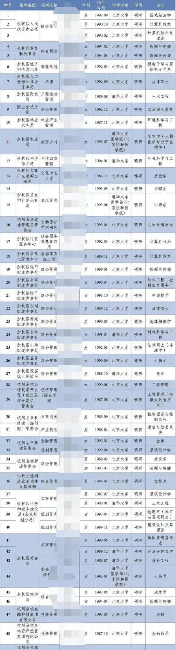 余杭区委组织部相关负责人向记者坦言,“大家朋友圈里看到的这张公示截图,是我们2018年面向应往届高校毕业生招的,有很多来自其他地区的选调生,他们看中的是杭州的发展潜力和活力,还有我们招聘时的诚意。”