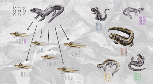 其中一些单性钝口螈的基因组和母亲一摸一样,另一些则多出一份,甚至更多份染色体。也就是说,单性钝口螈中的一些是双倍体、一些是三倍体、四倍体,甚至五倍体,其中最常见的是三倍体。