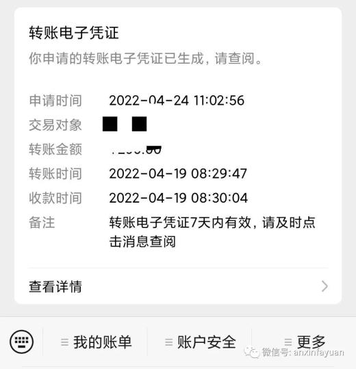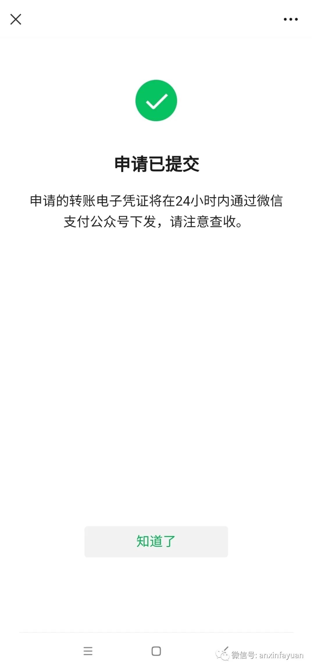打开转账的账单详情,在页面下方点击“申请转账电子凭证”,申请成功后,凭证会在24小时内通过微信支付公众号下发,点击详情即可下载打开。