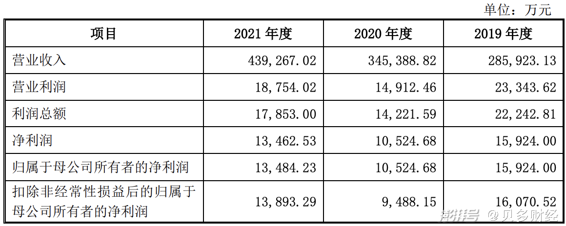 2019年、2020年和2021年,老乡鸡分别实现营业收入28.59亿元、34.54亿元和43.93亿元;实现净利润1.59亿元、1.05亿元和1.35亿元,扣非后净利润分别为1.61亿元、9488.15万元和1.39亿元。