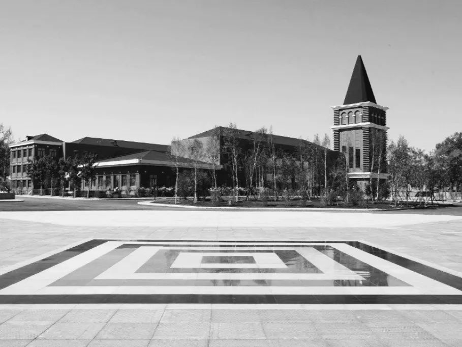 从石碑处步入校园,首先能看到的就是前广场。它不但有面积广阔而且是用多种颜色拼接而成的,走在上面的每一步都是温暖舒心的。