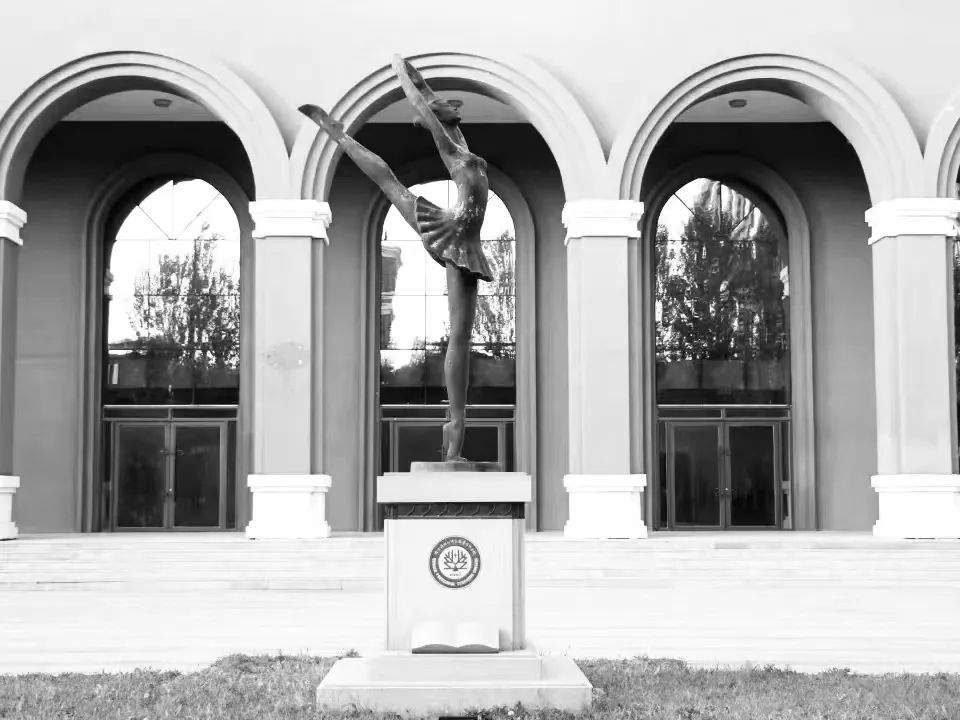 她是一塑雕像更是学子们心中的信仰,灵动、飘逸、清雅是她的代名词。棕色的外表更能体现出她的坚强与个性,一年四季都伫立在演艺中心楼前,每次路过看见她定格在空中的样子,仿佛是在激励着每位学子都要不言放弃。