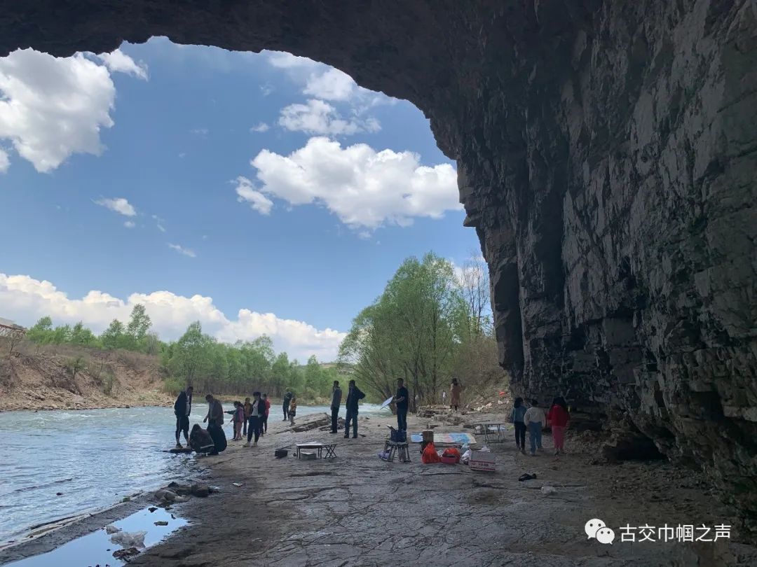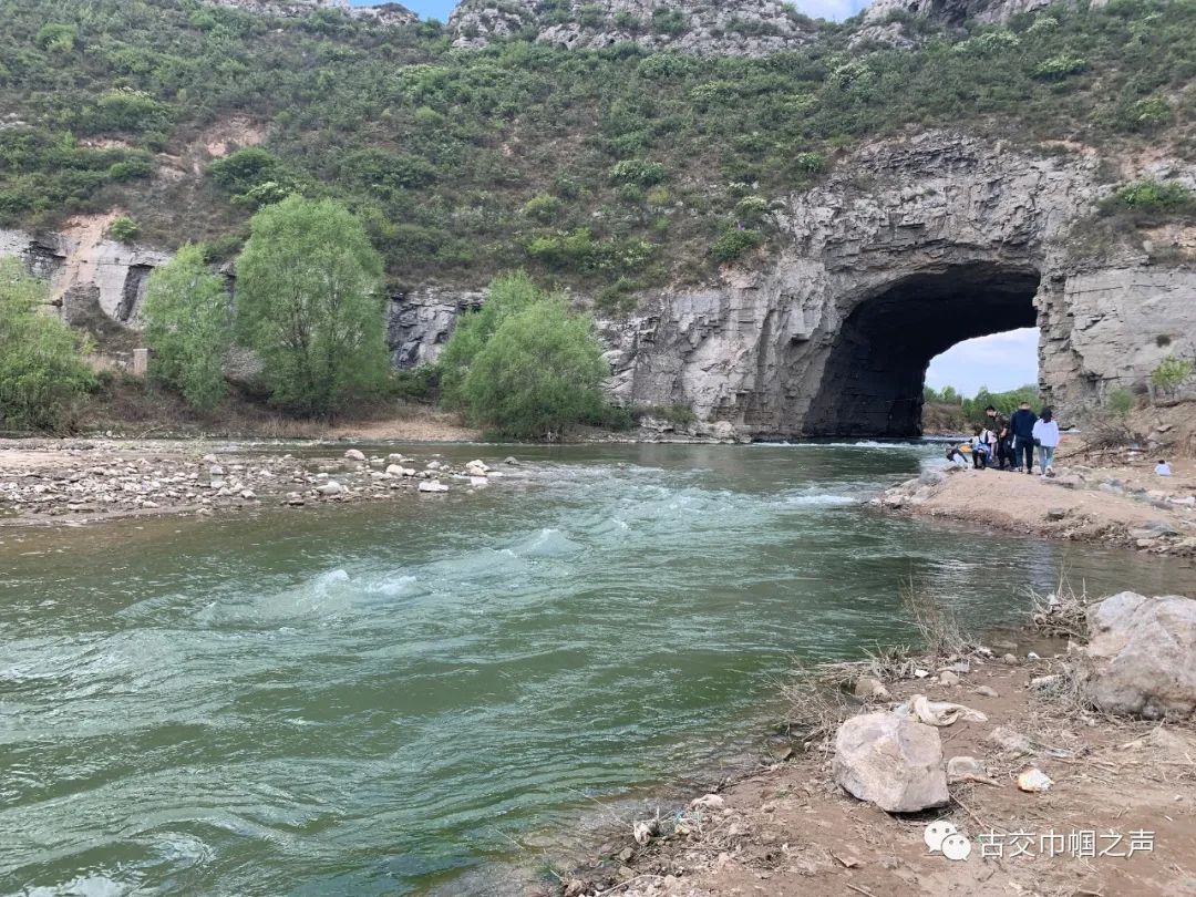 仿佛一块流动的祖母绿的翡翠,如一汪倾泻的绿瀑一掠而过.进而转为清澈见底的潺潺溪水,驻足细看,心神清明。五一期间古交市周家山汉道岩的美景,吸引了一大批人众前往观看,一时成为新的网红打卡地。清澈的溪水配以满目的青山,背靠无数智慧结晶雕凿出贯穿南北的巨大岩洞,绿水从洞中滔滔流泻。岩洞一面有大面积的天然石岸,人群在石岸上来往穿梭,相映成趣。