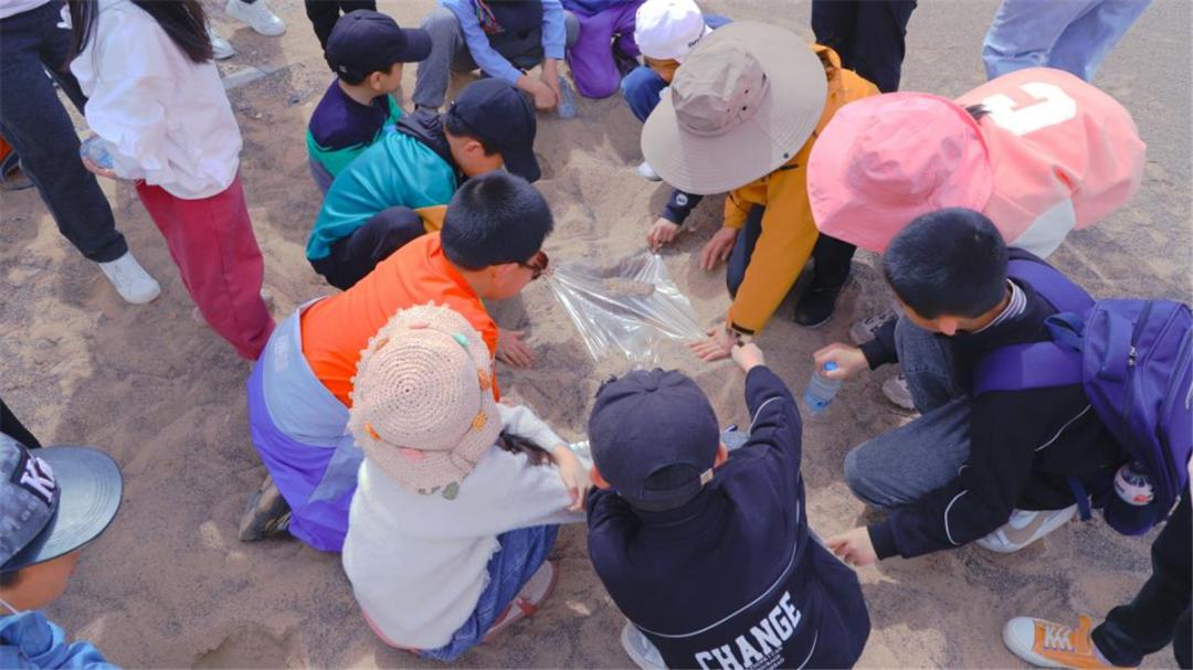 【戈壁取水】通过实际操作了解如何在沙漠戈壁中获取水,以及了解其中的原理。通过本次活动加强学生节约水资源、环境保护意识,了解地理地貌,倡导绿色消费,树立尊重自然、保护自然的发展理念,养成勤俭节约、低碳环保、自觉劳动的生活习惯。在实践中接受教育,才能让孩子走得更远。