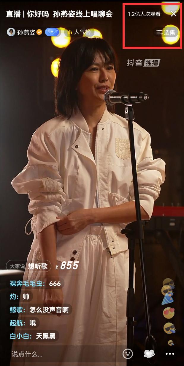 去年9月9日,孙燕姿也曾在抖音开了首场线上演唱会,短短一个小时获赞数达到了6个亿。