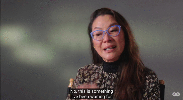 这是华裔女性伊芙琳的多重宇宙,也是末代女侠杨紫琼的多重宇宙。杨紫琼在《GQ》的采访中说着说着就哭了,她等这个剧本等得太久:“我终于有机会向所有人证明,我可以搞笑、可以真诚、可以悲伤。”