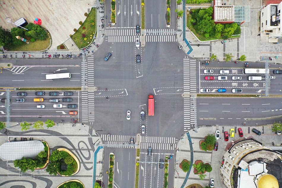 2022年5月28日,上海,奉贤宝龙广场旁的道路上,车辆明显增多。沈春琛/澎湃影像 图