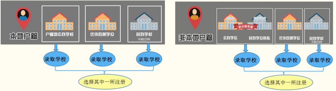 今年户籍生和非户籍生均有3种升学选择: