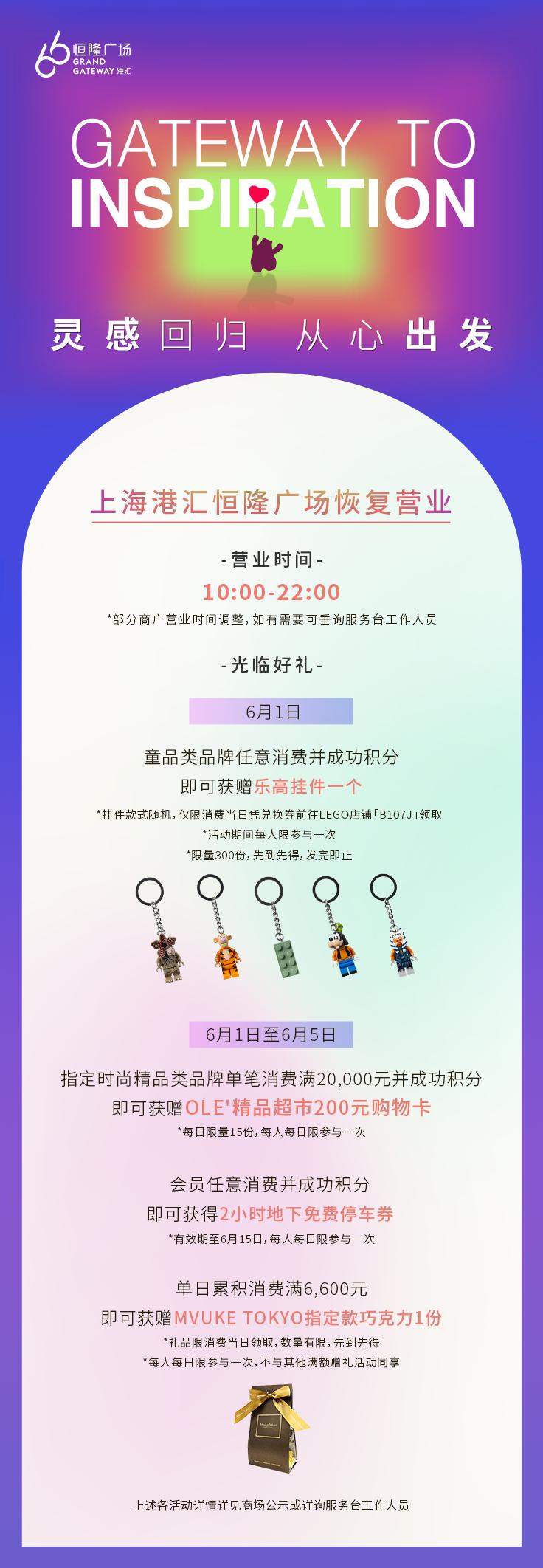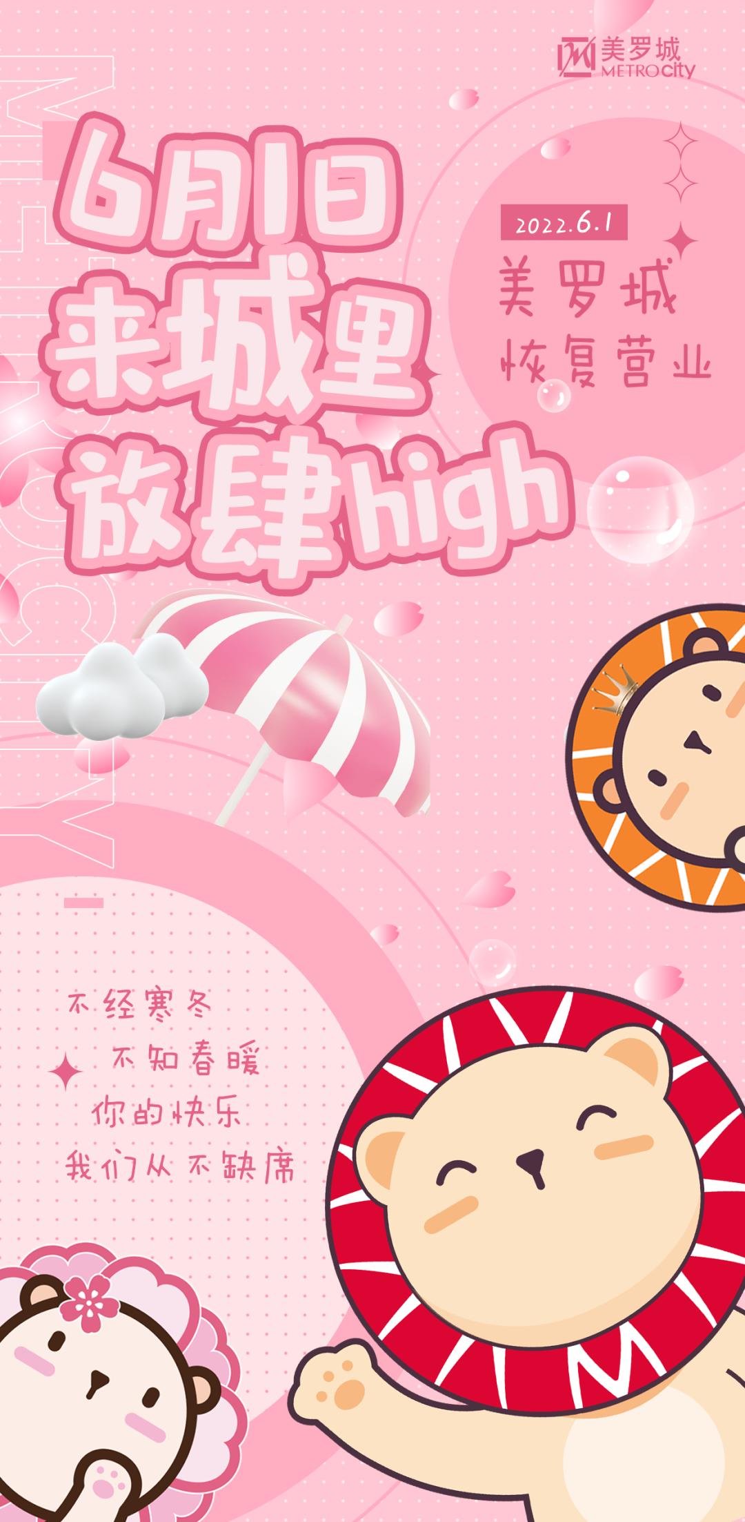 营业时间:2022年6月1日10:00-17:00(后续营业时间详见商场通知)