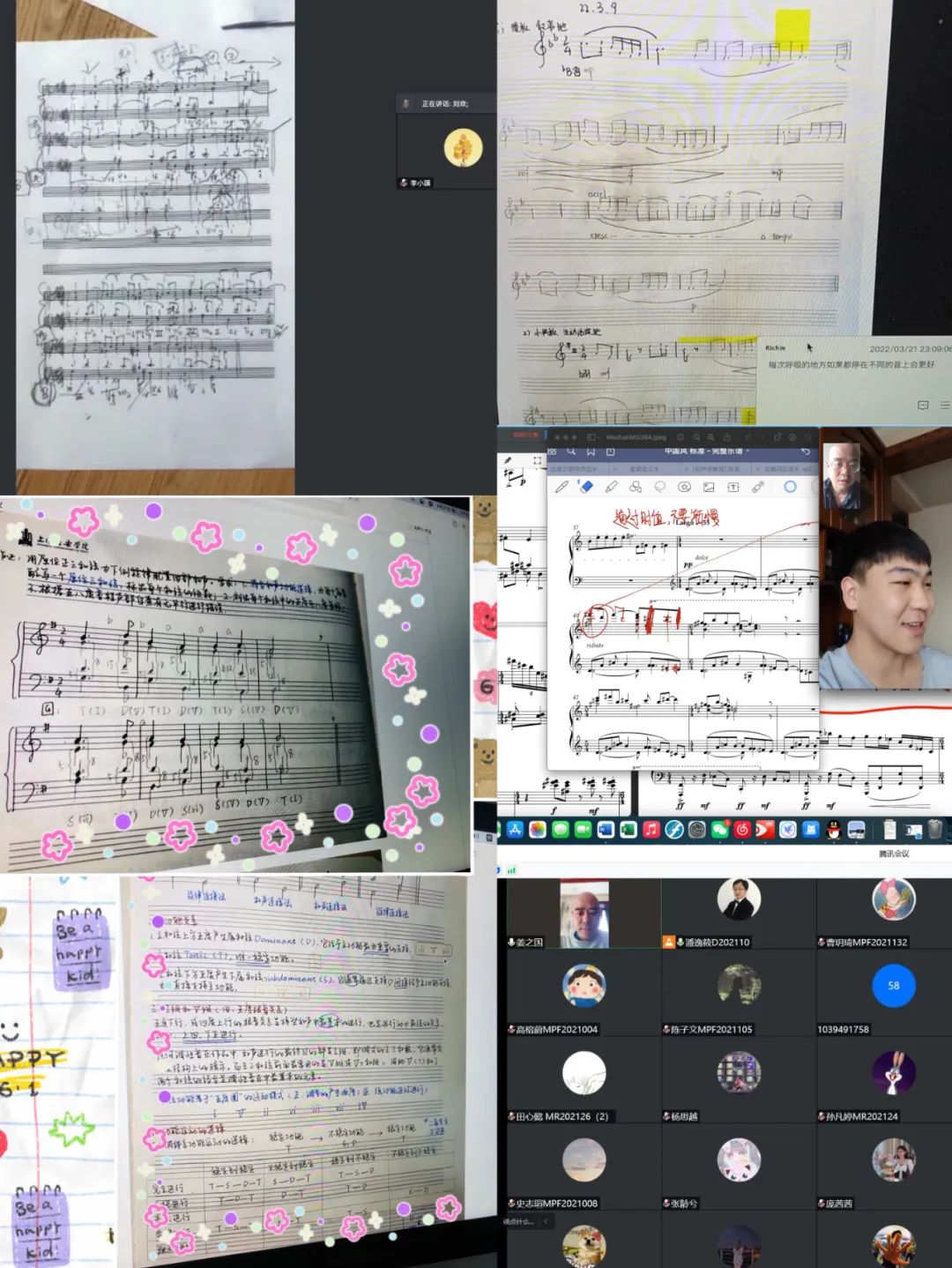 特殊时期,音乐学系积极应对线上教学新变化。一方面,教师们熟练运用各种教学软件,通过腾讯会议、学习通等教学介质,精心准备教学材料,及时调整教学形式,创新教学方法,注重课堂互动,全面提高网课效率;另一方面,坚持网课服务于课堂的原则,及时调整教学节奏,延伸课堂教学,强化课程答疑。同学们也积极配合老师,按时按质按量地完成了一系列的网课学习任务。