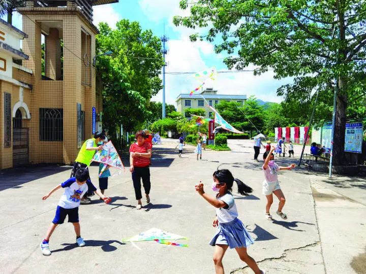 在荷茶村,父母带着孩子一起参加“党建引领 五彩缤纷童年乐”亲子DIY风筝梦想跑活动,手绘风筝,放飞梦想;
