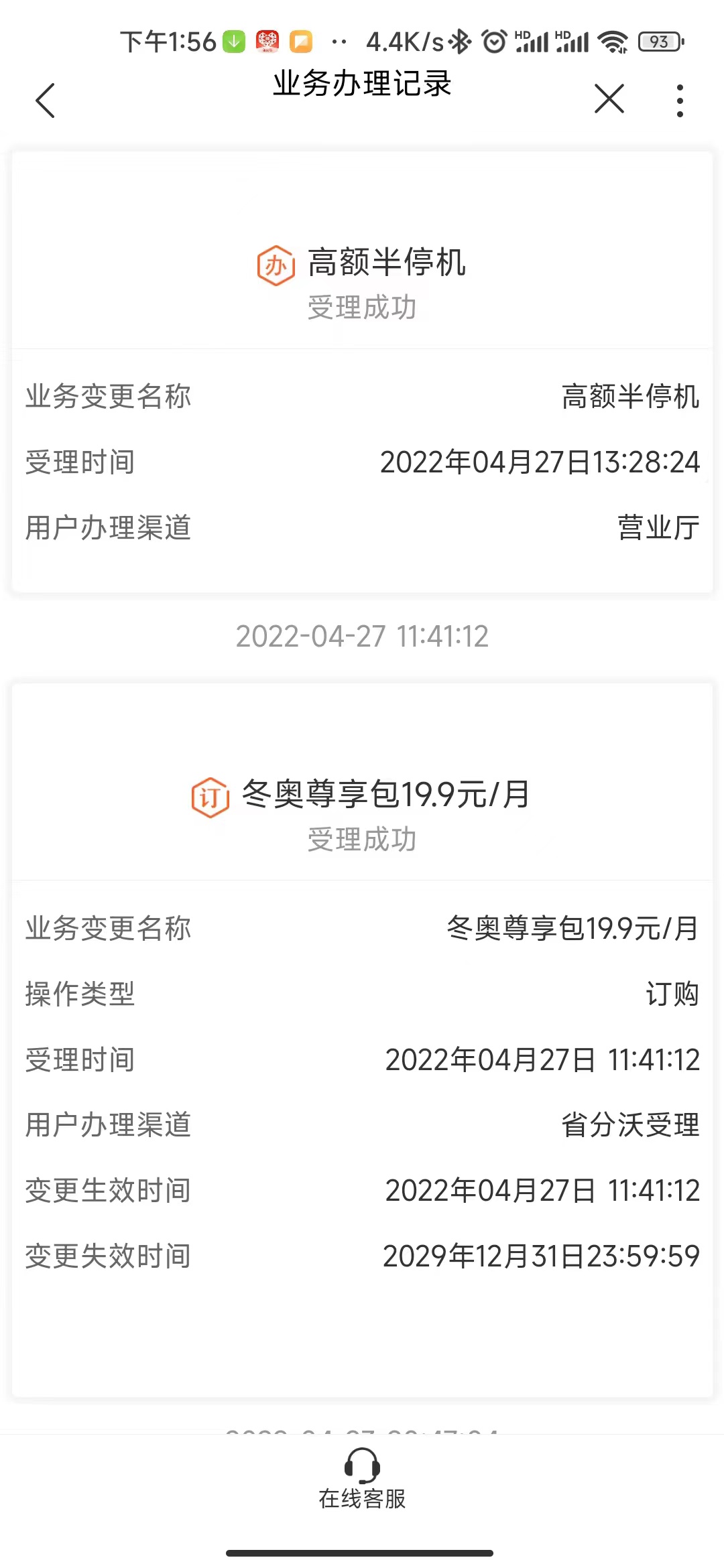 19.9元冬奥尊享包生效后导致账户再次进入半停机状态。