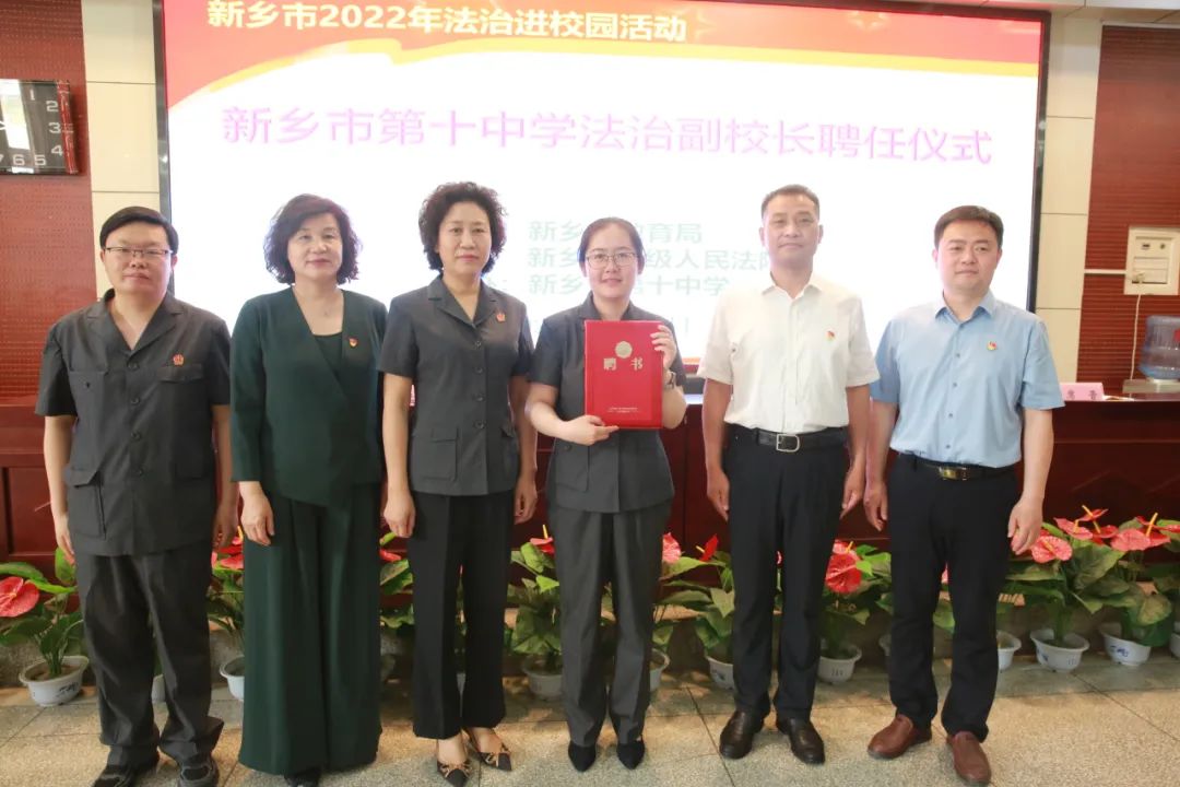 5月25日,新乡中院刑三庭法官走进市第十中学,开展“守护未来”校园普法活动,新乡中院副院长阎紫梅、新乡市教育局副局长冯建、刑三庭干警及新乡市第十中学的负责同志参加仪式。刑三庭汪剑法官被聘为该校法治副校长,法官助理刘冬明以“法治护航助成长,争做诚信小公民”为主题,给同学们带来了一堂精彩的法治讲座。