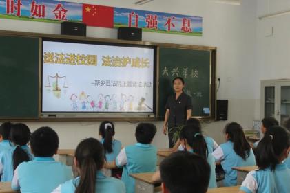 6月1日,新乡县法院干警来到大兴村小学开展“送法进校园 法治护成长”主题普法活动,法官用生动的语言,真实的案例、图文并茂的课件,通过法官深入浅出地讲解法律知识,在场师生对校园欺凌的概念、形式、特点、危害等有了进一步了解,对如何减少和杜绝校园欺凌现象的发生有了更加清晰的认识。在“法官姐姐说法”环节,通过互动问答及播放视频短片的形式,干警向在场师生介绍了《家庭教育促进法》的相关内容,祝愿孩子们在法治的呵护下,度过健康快乐的校园时光。获嘉县法院