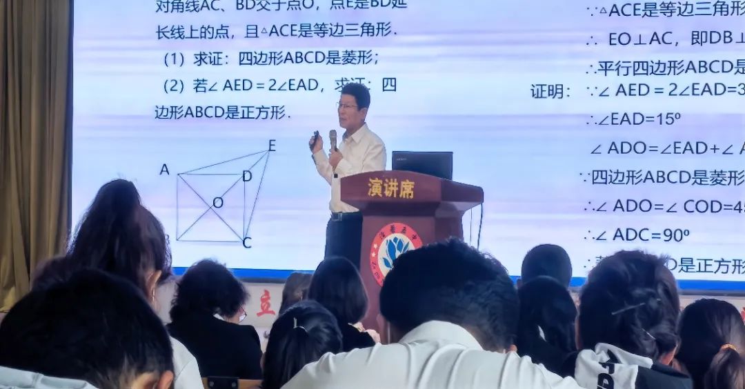 顾向东结合泽普县初中数学课堂教学现状,围绕四个方面内容进行阐述,在讲座中,顾向东通过案例展现多种解题方法以及提高学生兴趣、诱导学生参与教学的策略,并要求老师们在课堂上多给学生提供练习、反馈与表达的机会,巧妙运用发问、候答、叫答、理答等多种方式提高课堂效率,鼓励学生提问并及时反馈。