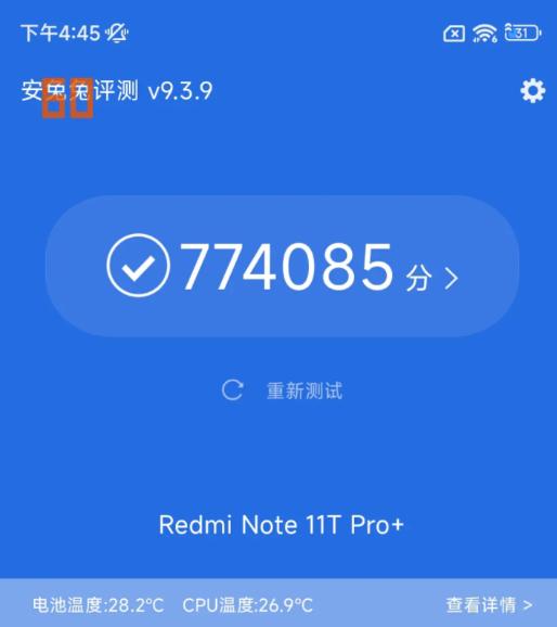 再配上常规的 LPDDR5 和 UFS3.1 ,这回红米 Note 11T pro 的性能理论上是不算差的。结果托尼打开安兔兔一跑,在默认均衡模式下的跑分只有 72w 分。