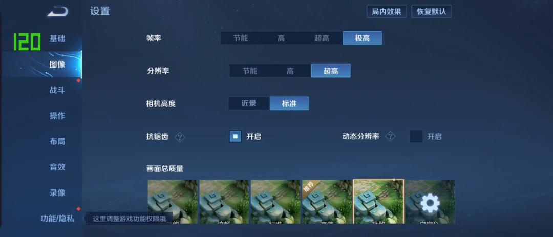 红米居然能够同时打开王者的 120FPS + 超高分辨率 + 极致画质。