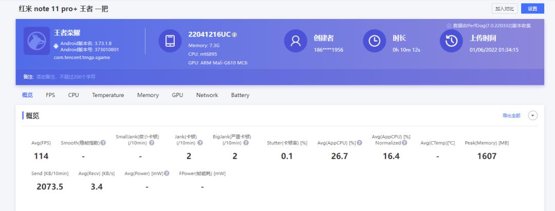 托尼测了不少 8 gen1 的手机,都只能做到含泪三选一。。。一把游戏简单下来,平均帧率能稳定在 114FPS 左右。