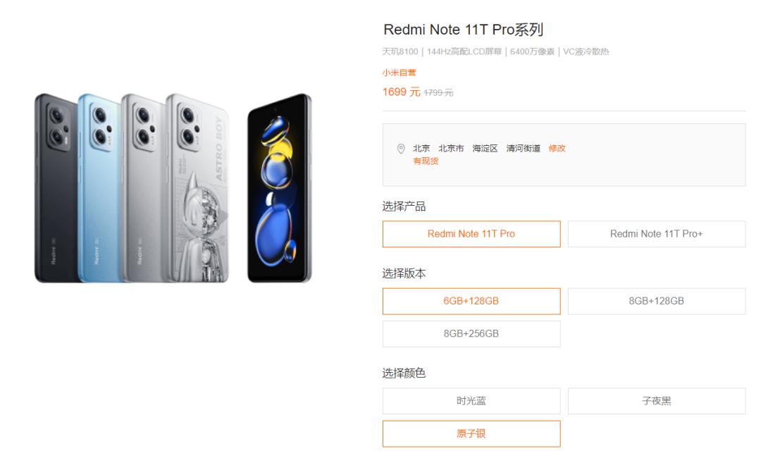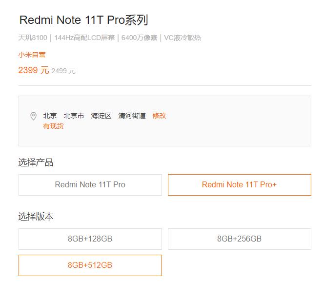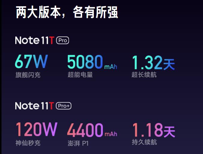 红米 Note 11 T pro 和红米 Note 11T pro+ 。