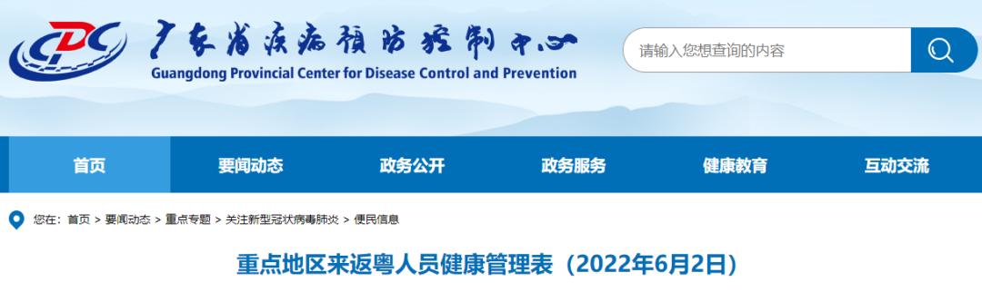 6月2日,广东疾控更新《重点地区来返粤人员健康管理措施》。