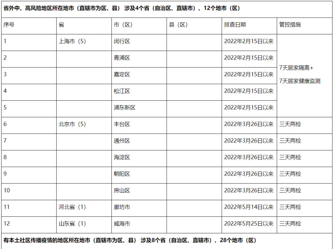 三、严格限制前往中高风险地区及所在县(市、区),非必要不前往中高风险地区所在地市、近14天内有新冠肺炎病例报告的县(市、区),以及省外陆地边境口岸城市。