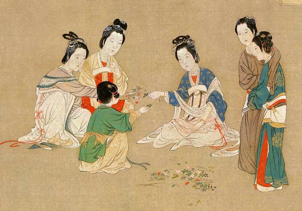 不止小孩子整天聚在一起斗草斗得乐哈哈,少女少妇也沉迷其中不能自拔。唐代崔颢写《王家少妇》“闲来斗百草,度日不成妆”,为了斗草连妆也顾不得化了。女子斗草时,往往会以珠钗等作为赌注。